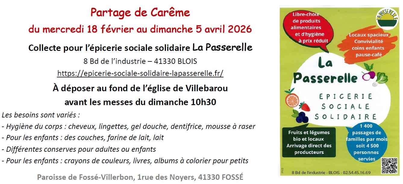 => collecte pour la Passerelle (épicerie sociale et solidaire à Blois – https://epicerie-sociale-solidaire-lapasserelle.fr/) du mercredi des Cendres à Pâques (18 février au 5 avril)